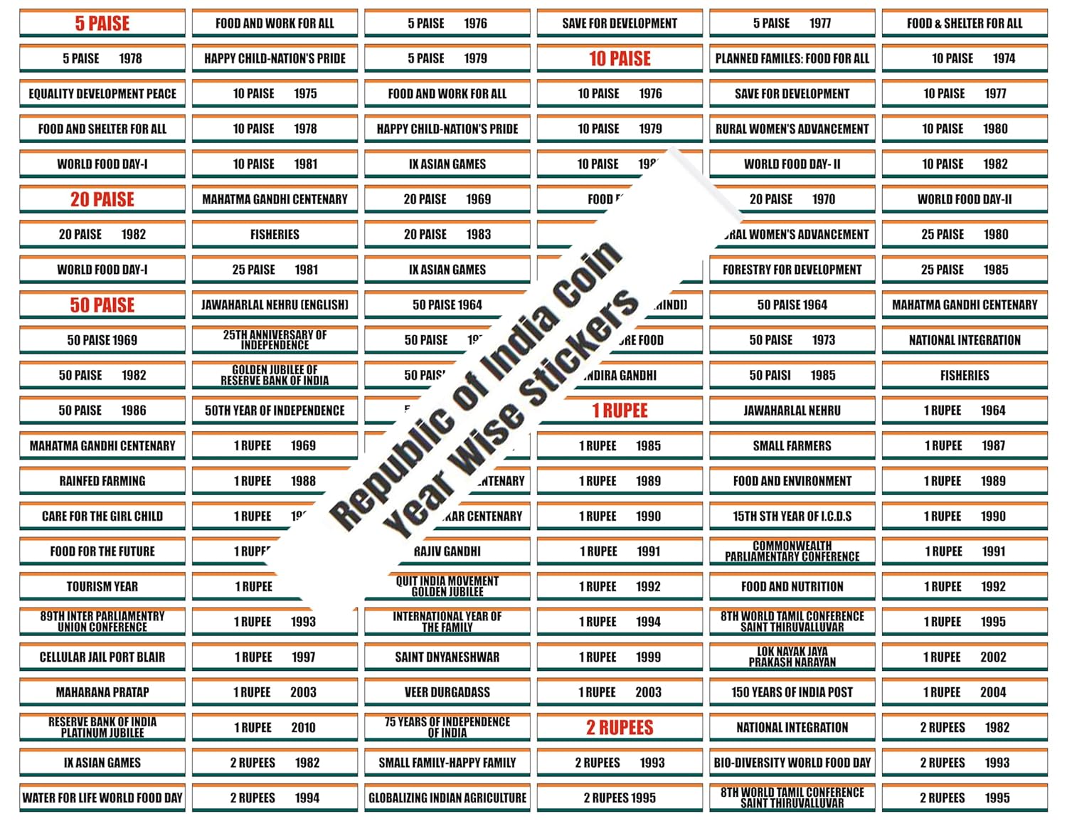 Special Minds Store® Republic of India Coin Year Wise Stickers 1947-2023, Multicolor Sticker Sheets Set